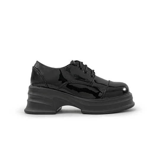Mario D ' boro LY 25933 C90 Black patent leather platform oxford shoe with thick sole and lace-up design.