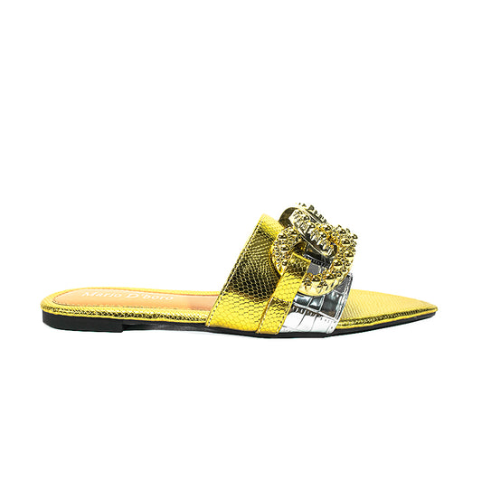 Mario D' Boro Women's Flat Sandals LX 27335 Gold C54