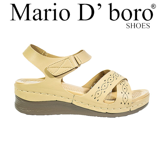 Mario D' Boro Women's Flat Sandals LY 28314 Medium Beige/Off White C70