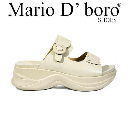 Mario D' Boro Women's Flat Sandals LY 28019 Bone/VDark Brown C65