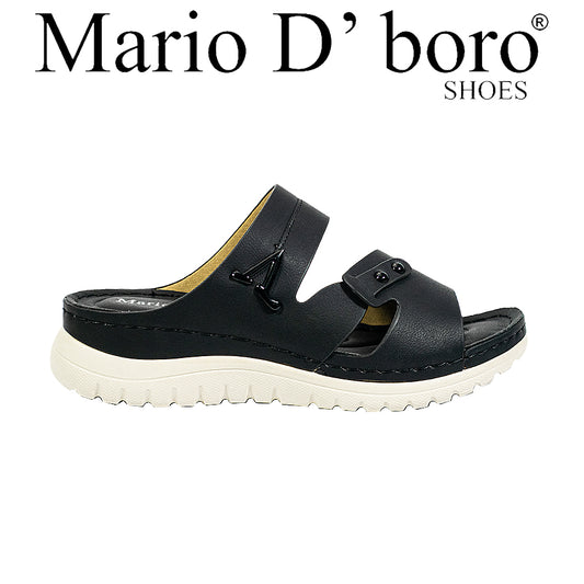 Mario D' boro Women's Flat Sandals LY 29052 Black / Bone C79