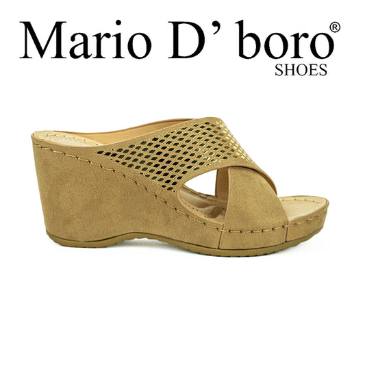 Mario D' Boro Women's Wedge Sandals Lv 22312 Beige/Black