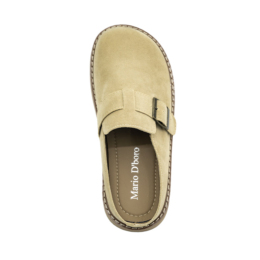 • Key Features: - Slip-on mules with a round toe. - Color: Bone/Medium Brown.